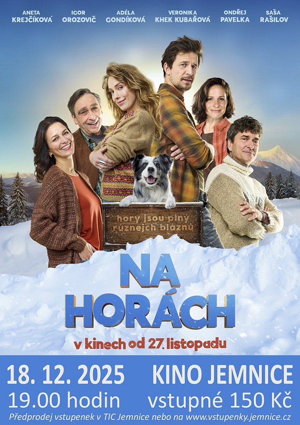 Město Jemnice zve na promítání filmu Na horách, promítat se bude ve čtvrtek 18. 12. 2025 v 19:00 hodin v kině v Jemnici. Vstupné je 150 Kč.
